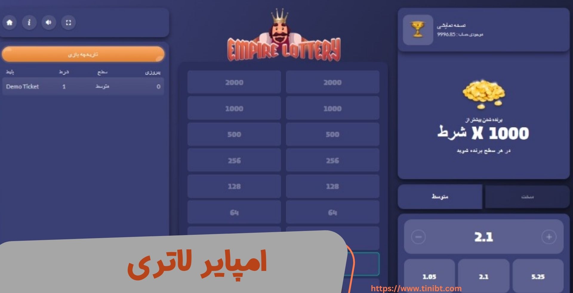 از بازی های جذابی که به تازگی در سایت شرط بندی ارائه شده است بازی امپایر لاتری می باشد. این بازی از بازی های جذاب سایت های بت است. از آن جایی که کاربران اطلاعای در مورد بازی empire lottery ندارند. تصمیم گرفتیم که برای شما در مورد این بازی صحبت کنیم و اطلاعات کامل را در اختیار شما قرار دهیم. تا بتوانید مانند کاربران حرفه ای از این بازی استفاده کنید.